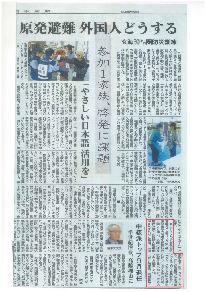 2025年10月6日西日本新聞「九州電力玄海原発の過酷事故の場合外国人旅行者は避難できない」(🔍クリックして拡大)